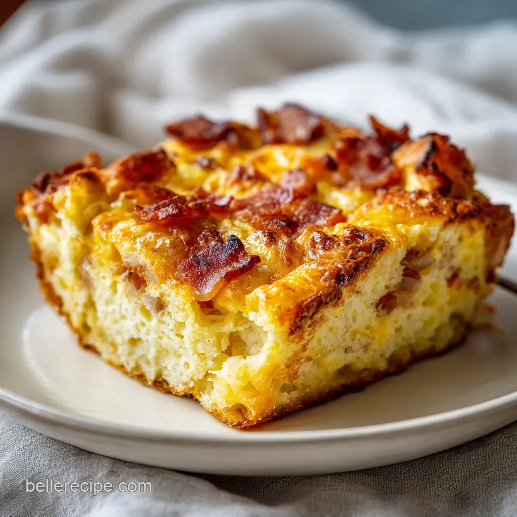 The Protein Lattice: Eggs and half and half create a delicate matrix that traps moisture, ensuring the casserole stays supple rather than drying out.