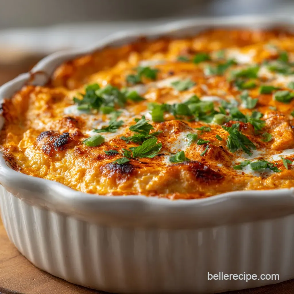 You'll also need 1/2 cup (120ml) buffalo wing sauce I usually reach for a Buffalo Sauce Recipe if I have time to make it from scratch and 1/2 cup (120ml) Hidden Valley Ranch dressing. To round out the aromatics, 1 tsp garlic powder is essential. Finally, the cheese topping is a blend of 1 cup shredded sharp cheddar and 1 cup shredded monterey jack, finished with 2 thinly sliced green onions for a refreshing bite.